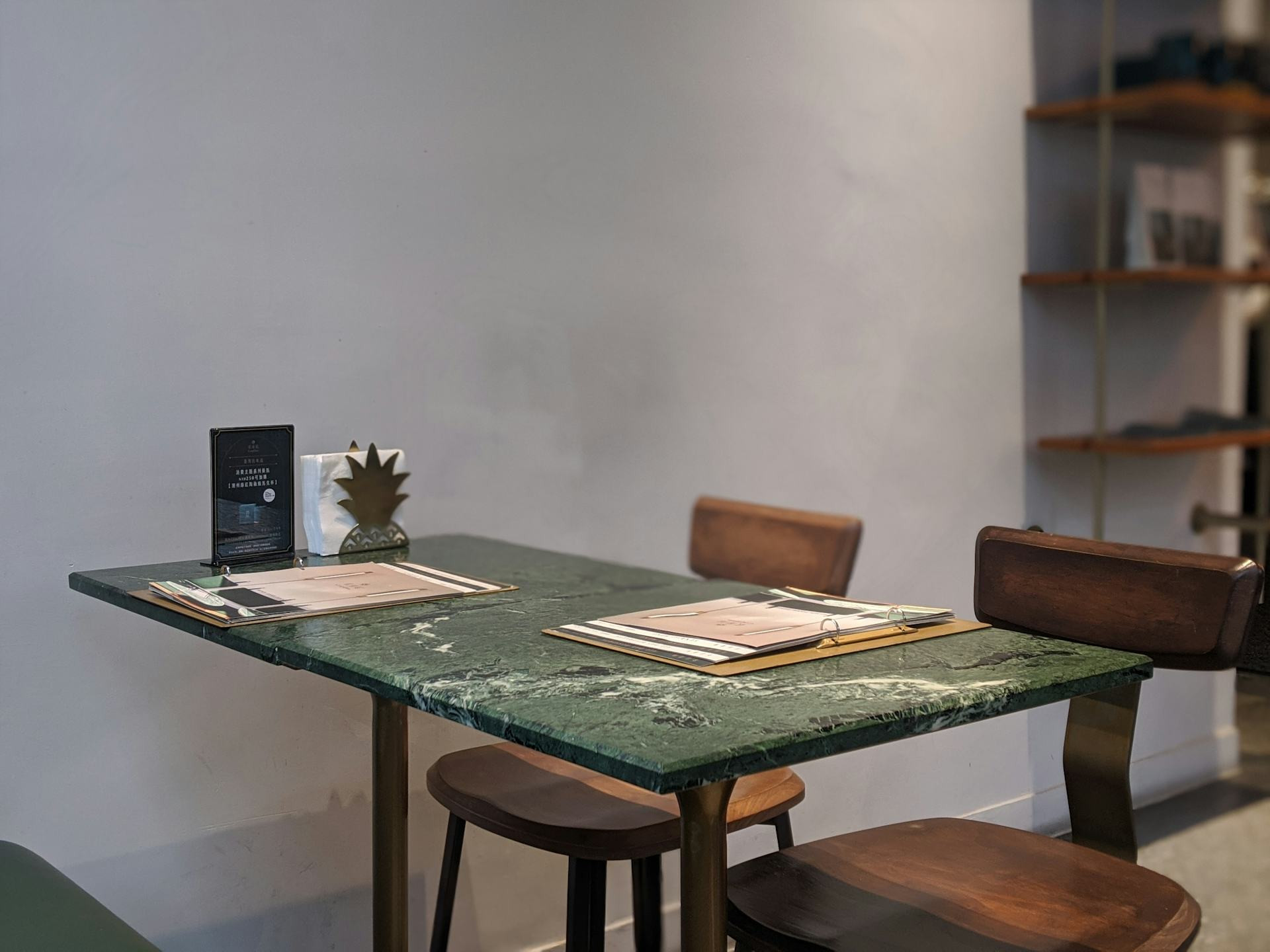 - Natursten eller terrazzo – tilfører tyngde og luksus, ideelt til et mere eksklusivt barområde.